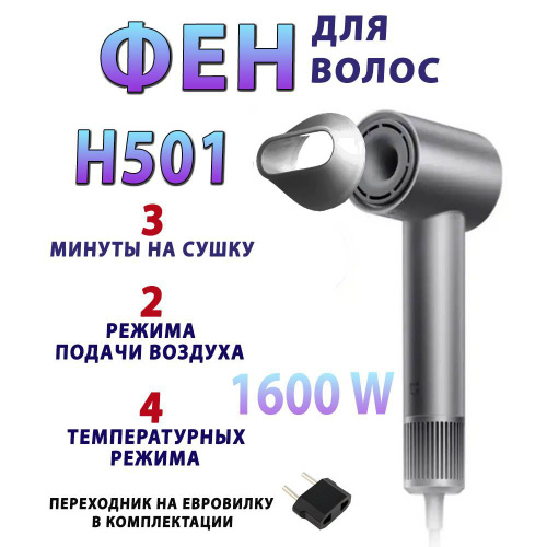 ФенMijia Dryer H501 Серый (Щадящая температура 57 градусов, Режим холодный воздух, Ионизация, 4 температурных режима, Защита от перегрева, Насадка концентратор, Скорость воздушного потока 62 м/с)
