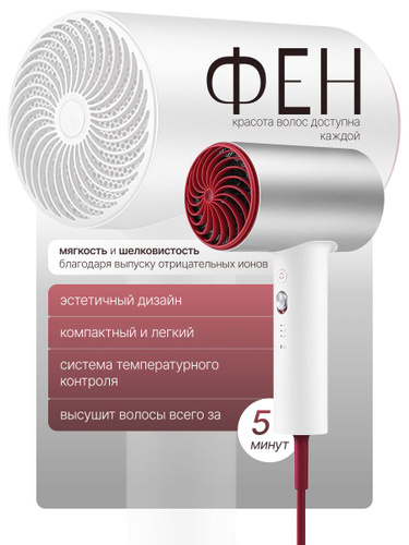 Фен для волос Xiaomi Water Ion Hair H500, 1800Вт, мощный, профессиональный, с ионизацией / мини фен для волос дорожный xiaomi mijia маленький
