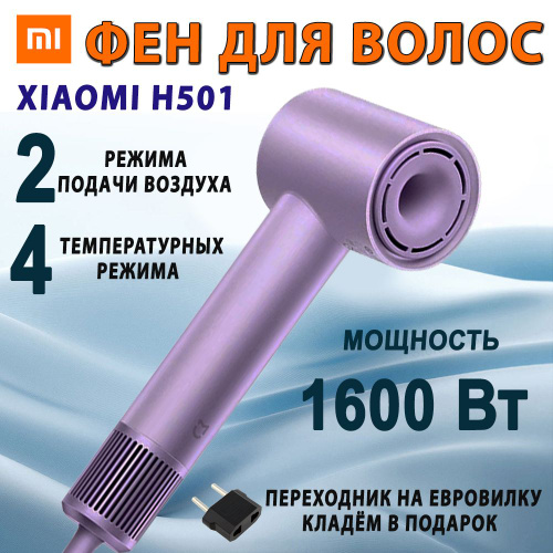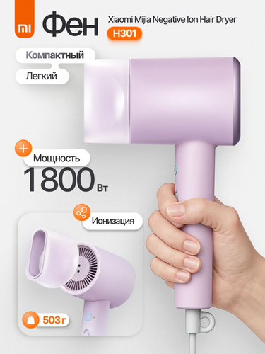 Фен для волос Xiaomi Mijia Negative Ion Hair Dryer H301 фиолетовый, 1800Вт, мощный, профессиональный, с ионизацией / мини фен для волос дорожный xiaomi mijia маленький