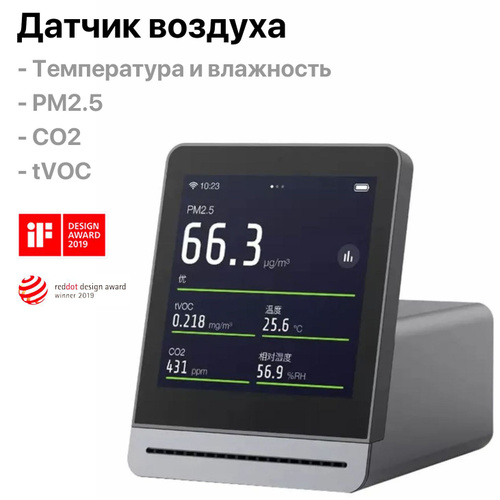 Анализатор качества воздуха Xiaomi Qingping Air Monitor датчик углекислого газа СО2, 5 в 1 (температура,влажность,СО2,PM2.5,tVOC) MiHome APP,черный