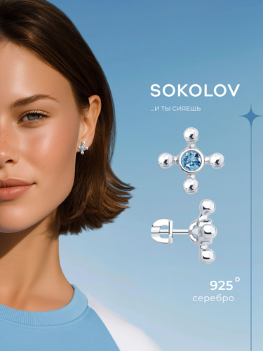 Серьги пусеты женские серебро 925 пробы SOKOLOV, ювелирные украшения, серебряные гвоздики