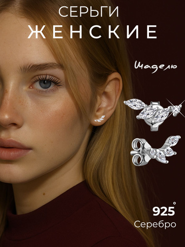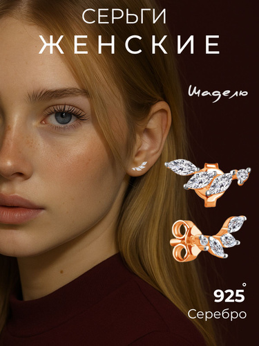 Серьги пусеты женские серебро 925 ювелирные украшения гвоздики с фианитами