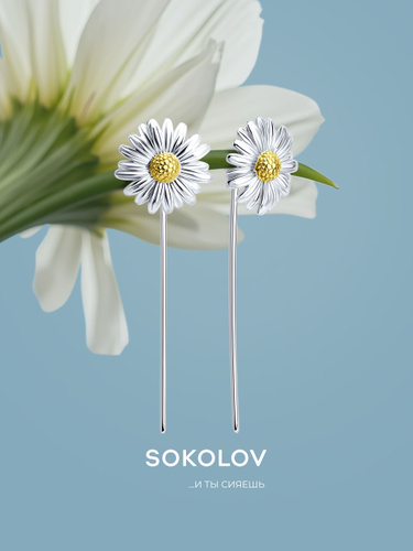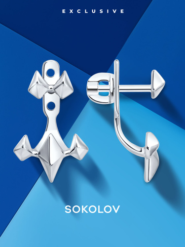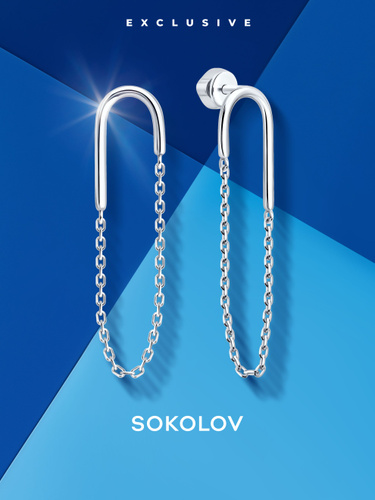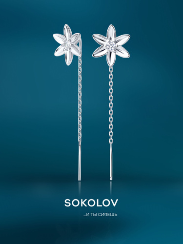 Серьги продевки серебряные женские 925 пробы SOKOLOV, ювелирные украшения протяжки