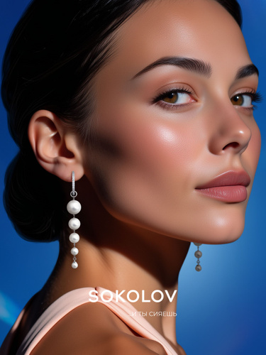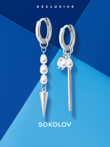 Серьги длинные женские серебро 925 пробы SOKOLOV, ювелирные украшения серебряные с жемчугом