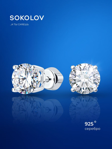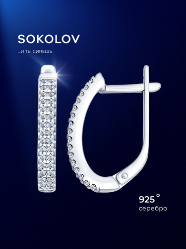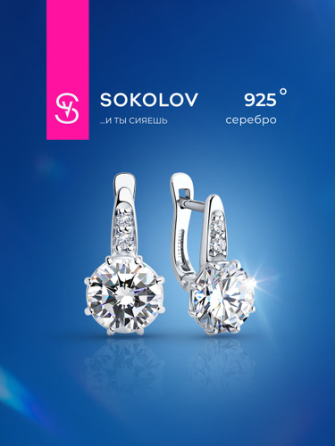 Серьги серебряные женские 925 пробы SOKOLOV, ювелирные украшения из серебра с камнями фианитами
