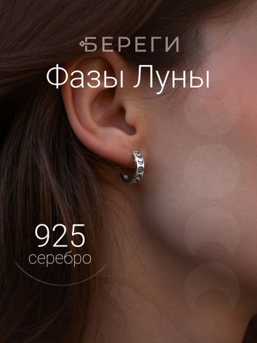 Серьги пусеты Фазы Луны полукруг серебро 925, ювелирное украшение