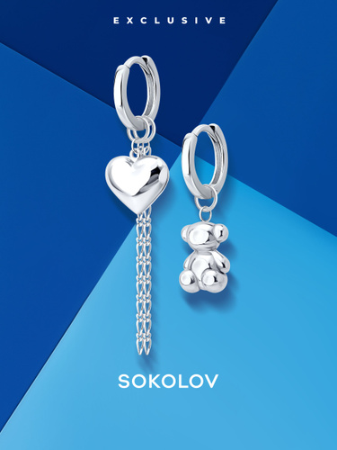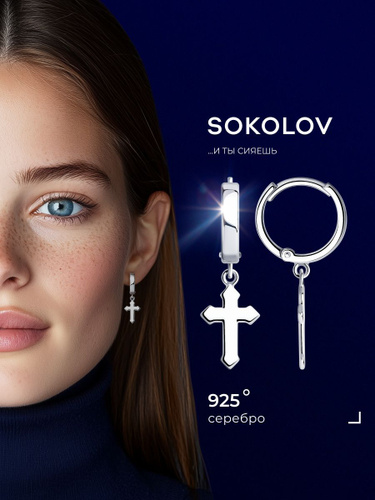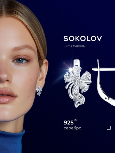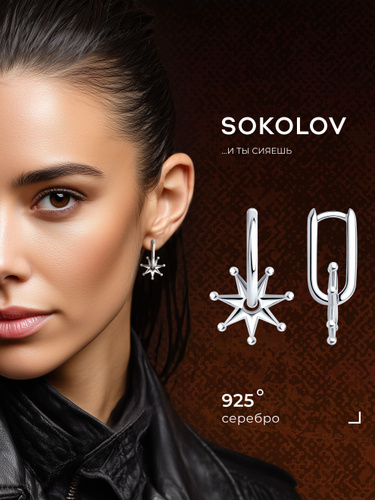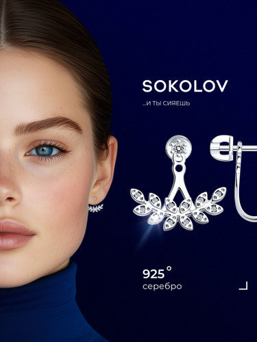 Серьги женские серебро 925 пробы SOKOLOV, серебряные ювелирные украшения