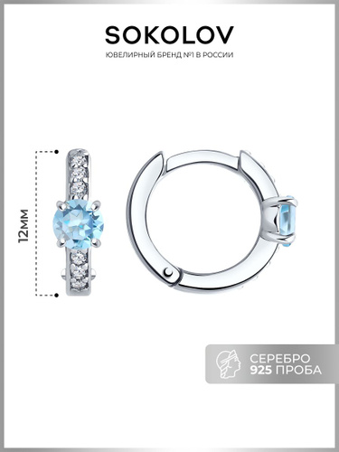 Серьги серебряные женские 925 пробы SOKOLOV, ювелирные украшения из серебра с камнями топазами и фианитами