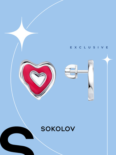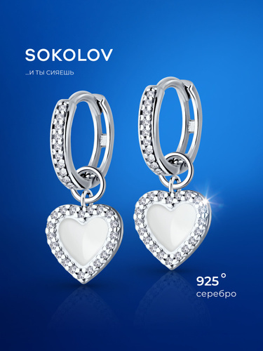 Серьги серебряные женские 925 пробы SOKOLOV, ювелирные украшения из серебра с эмалью