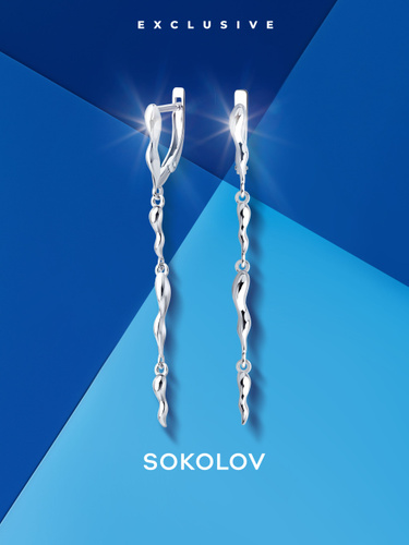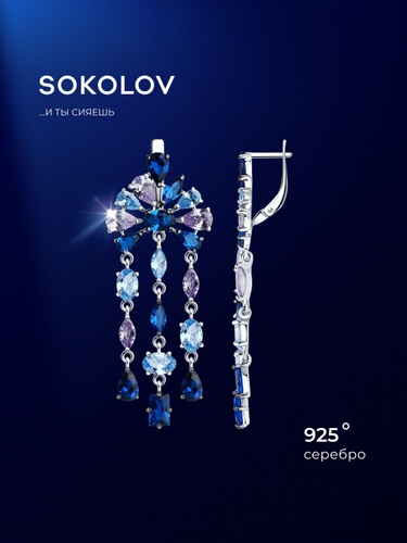 Серьги длинные женские серебро 925 пробы SOKOLOV, ювелирные украшения серебряные