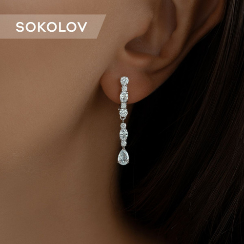 Серьги длинные женские серебро 925 пробы SOKOLOV, ювелирные украшения серебряные с камнями фианитами