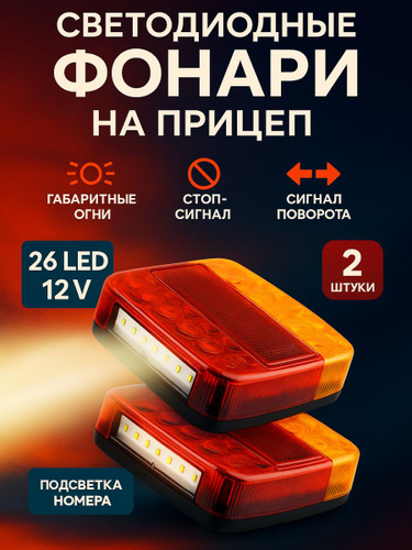 Фонари задние LED 12В для прицепа с подсветкой номера, комплект 2 шт