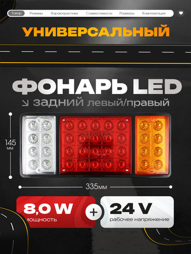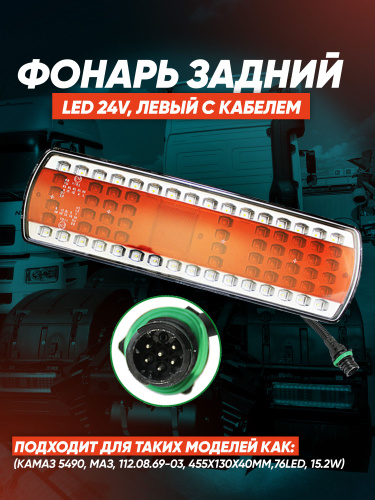 ТехАвтоСвет Фонарь задний совместим с А21R22 Газель Next, МАЗ ЕВРО, UNIVERSAL левый с проводом и габаритом б/л арт. 7452-250