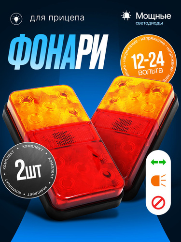 Фонари на прицеп легковой светодиодные 2шт 12В, задние фонари на прицеп и грузовик