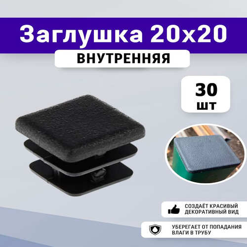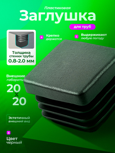 Заглушка 20х20 квадратная пластиковая для профильной трубы (20+1 шт.)