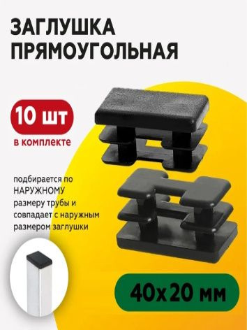 Заглушка 40х20 прямоугольная для профильных труб, черн. ( 10 шт.)
