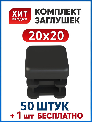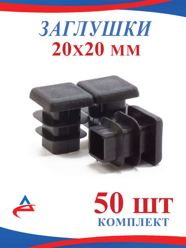Заглушка 20х20 мм пластиковая для металлических профильных труб, для ножек (50шт.)