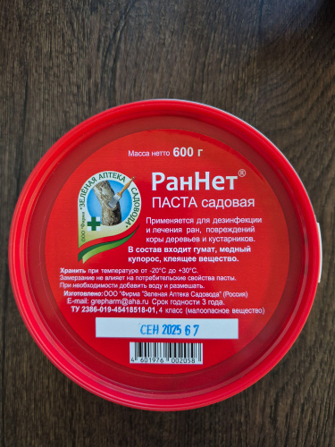 Садовая паста для дезинфекции и заживления ран деревьев и кустарников РанНет, 600 гр