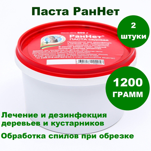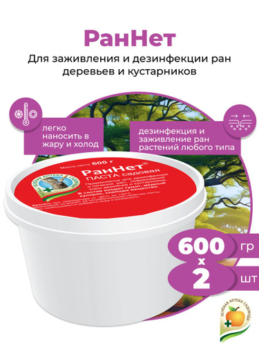 Паста замазка для заживления повреждений садовых деревьев "РанНет", 2 шт * 600 г - 1200 г (садовый вар)