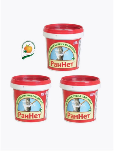 Паста для заживления повреждений садовых деревьев "РанНет", 3 х 150 г - 450 г (замазка, садовый вар)
