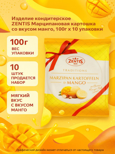 Изделие кондитерское ZENTIS Марципановая картошка со вкусом манго, 100г x 10 упаковки