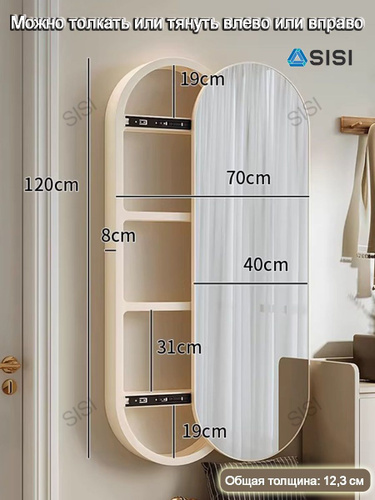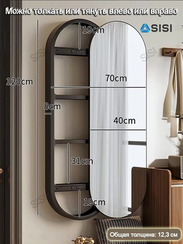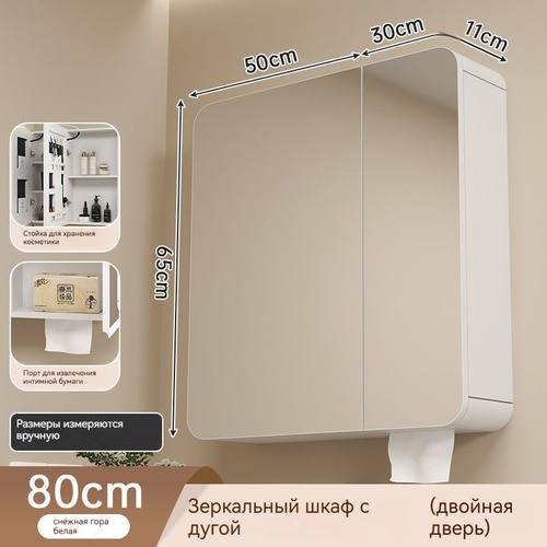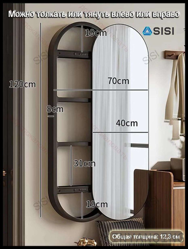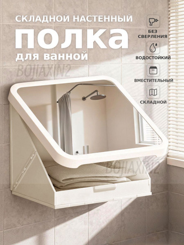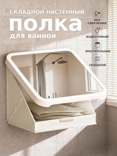 Складное настенное зеркало с полкой для ванной, водостойкое, без сверления, с большим отсеком для хранения полотенец и одежды