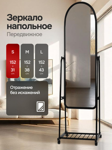 Зеркало напольное в полный рост на колесиках. Узкое черное 110х31 см