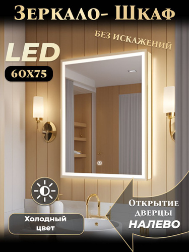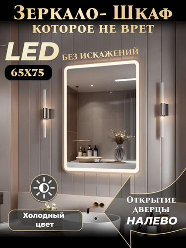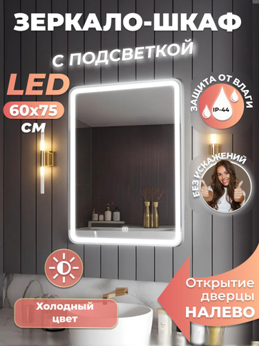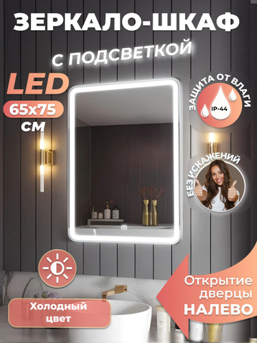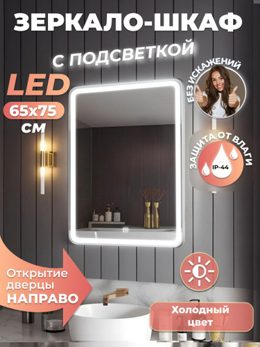 Зеркало-шкаф Мира 65 с холодной подсветкой, 65х75х14 см