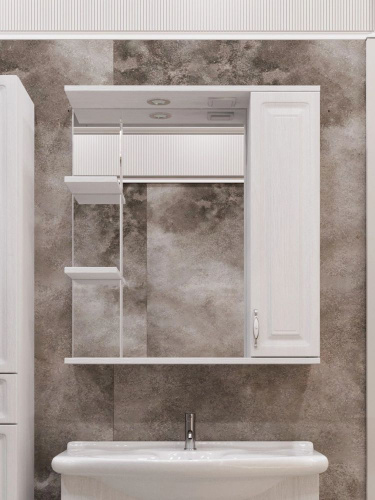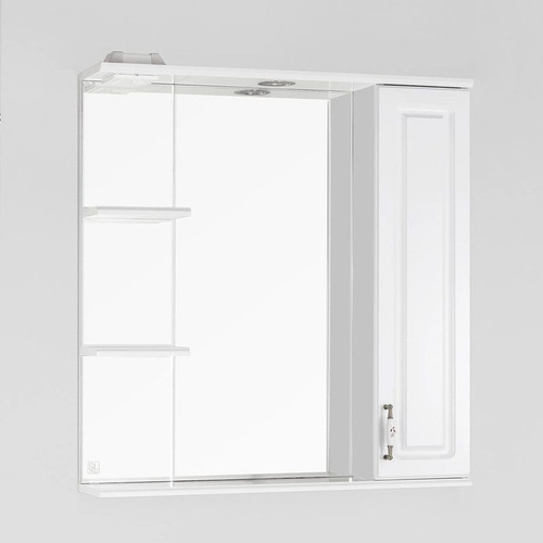 Зеркало Style Line Олеандр-2 Люкс С 75 с подсветкой, с полкой, со шкафчиком, 75 см, с розеткой, белое