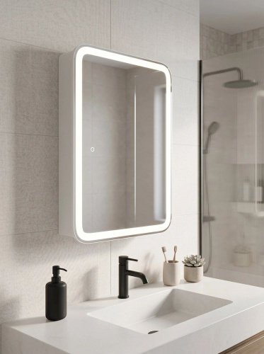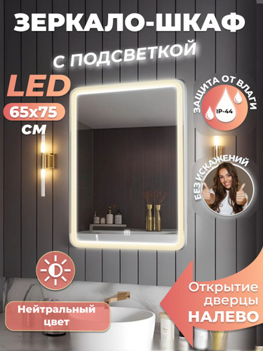 Зеркало-шкаф Мира 65 с нейтральной подсветкой левое, 65х75х14 см
