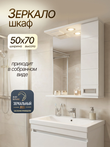 Зеркало-шкаф Мира 50 с подсветкой, 50х75х14 см