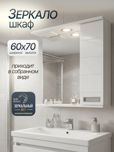 Зеркало-шкаф Мира 60 с подсветкой, 60х75х14 см