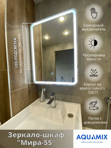 Зеркало-шкаф Мира 55 с подсветкой, 55х75х14 см