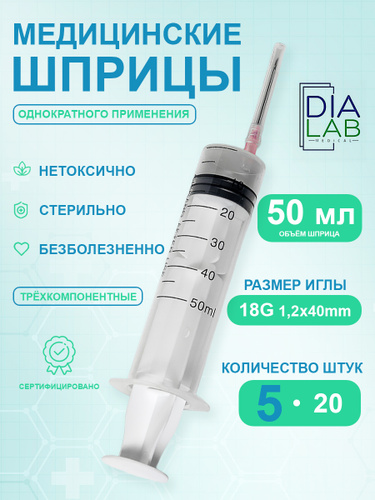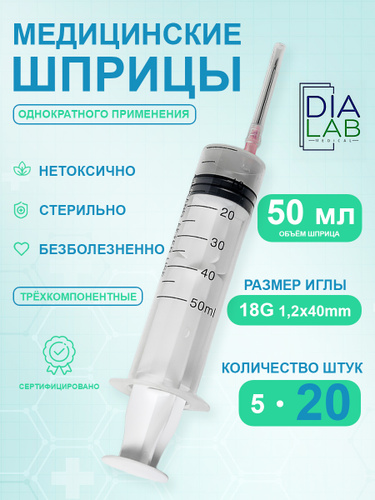 Шприц 50мл большой медицинский жане с иглой 18G 1.2х40мм 20шт