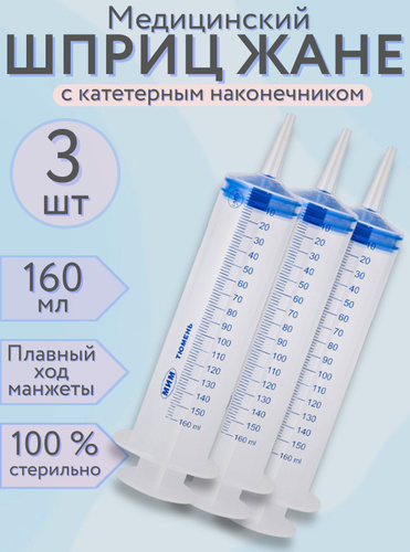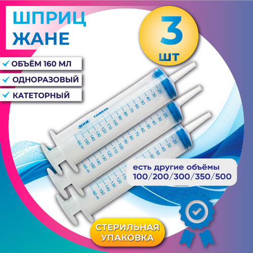 Шприц Жане 150 мл, КОМПЛЕКТ из 3х штук, медицинский с катетерным наконечником