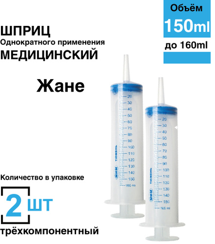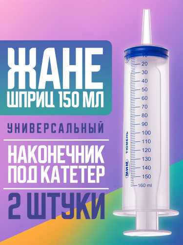 Шприц одноразовый с катетерным наконечником 150 мл 2 шт, Жане