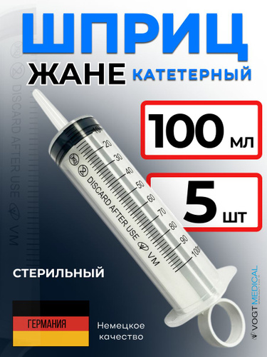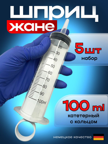 Шприц стерильный трехкомпонентный 100 мл -5 шт. Шприц Жане катетерный для кормления и катетеров
