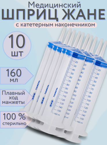Шприц ЖАНЕ, медицинский с наконечником под катетер, 150 мл, 10 штук, кондитерский , большой для откачивания жидкостей , для смазки , автомобильный