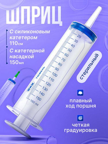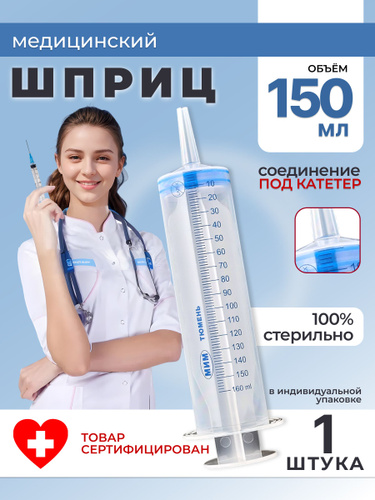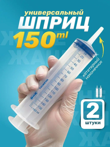 Шприц однократного применения трехдетальный с катетерным наконечником 150 мл 2 штуки