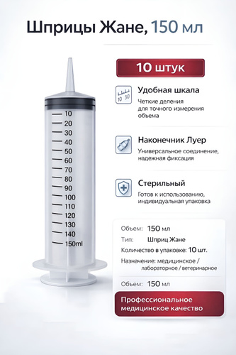 Шприц Жане 150 мл, 10 штук