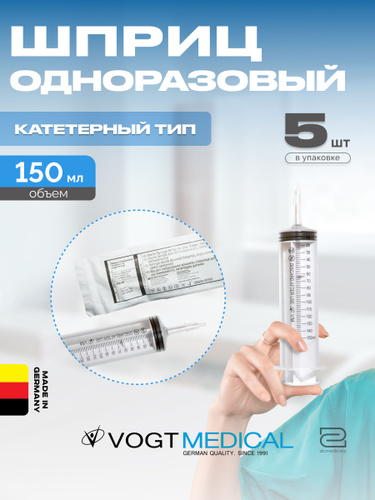 Шприц 150 мл катетер с переходником Vogt Medical Германия 5 штук