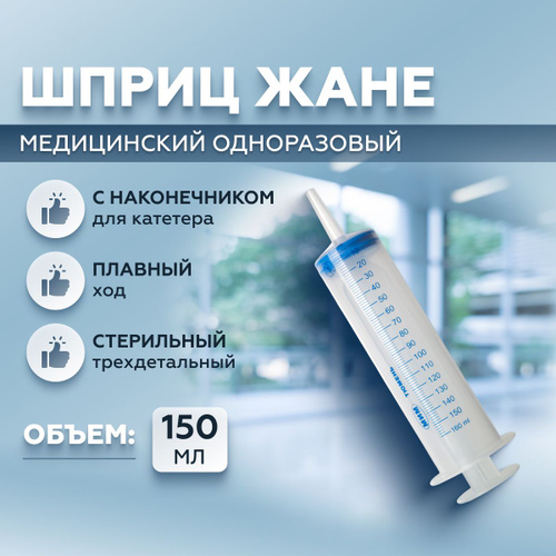 ООО "МИМ" Шприц Жане 150 мл медицинский одноразовый трехдетальный стерильный с наконечником для катетерной насадки 1 шт. (Шприц однократного применения по ТВНЛ.942311.025 ТУ)