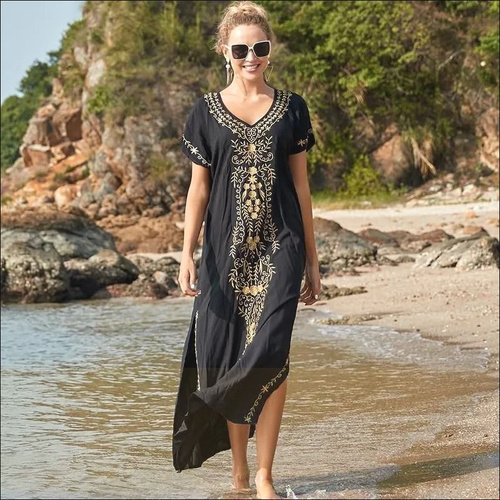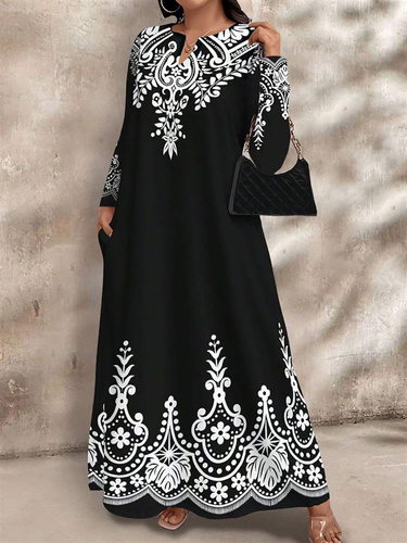 Платье Женская длинная платье-кафтан с принтом, летняя, свободный крой, для отдыха