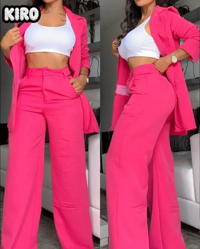 Комплект одежды 2026 Однотонный блейзер с воротником и раздельными рукавами и брюками с карманами и прямыми брючинами