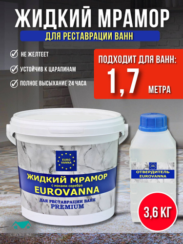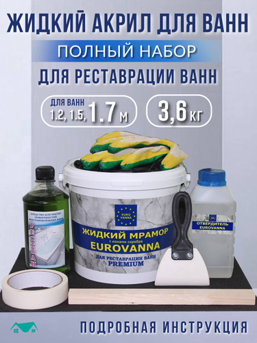 Жидкий акрил для ванны НАБОР EUROVANNA жидкий мрамор для ванн 1,2-1,7 м., 3,6 кг.
