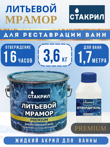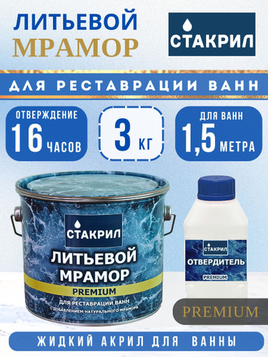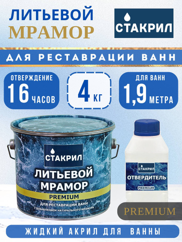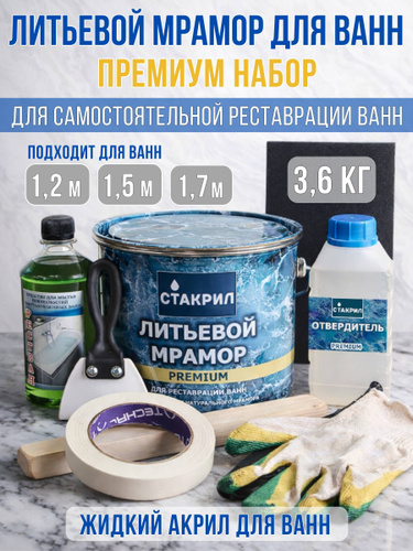 Жидкий акрил для ванн Стакрил литьевой мрамор для ванн набор для реставрации 1,2-1,7 м.