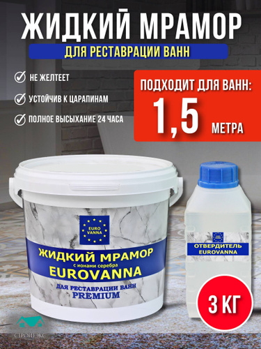 Жидкий акрил для ванны EUROVANNA жидкий мрамор для ванн 1,2-1,5 м., 3 кг.