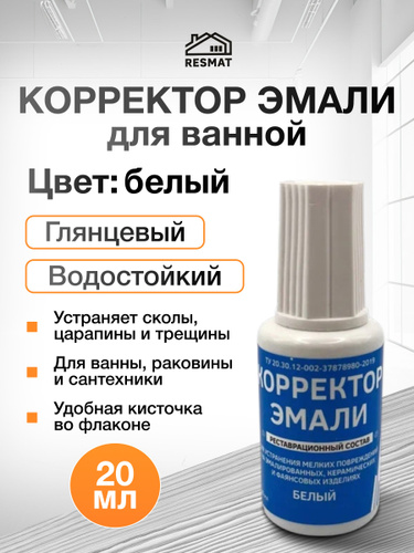 Эмаль для ванны белая 20 мл, Resmat. Жидкий акрил для ванн с кисточкой