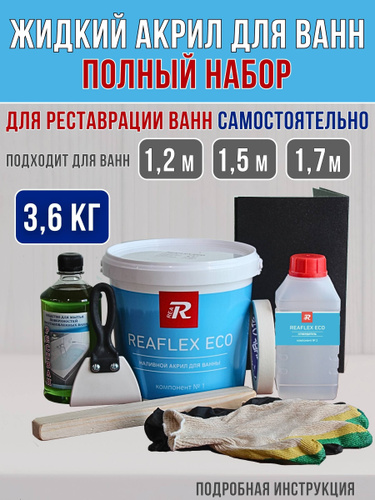 Жидкий акрил для ванн REAFLEX ECO 1.7 м, (3,6 кг).