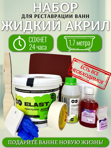 Набор для самостоятельной реставрации ванн ELAST ACRYL наливной акрил жидкий